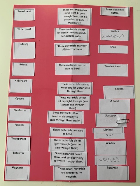 Today we focussed entirely on vocabulary. After last lesson, which demonstrated excellent practical and enquiry skills, it was evident in discussion that we sometimes struggled to choose the right vocabulary effectively. Here are some examples of some of the work we did and the vocabulary we chose.