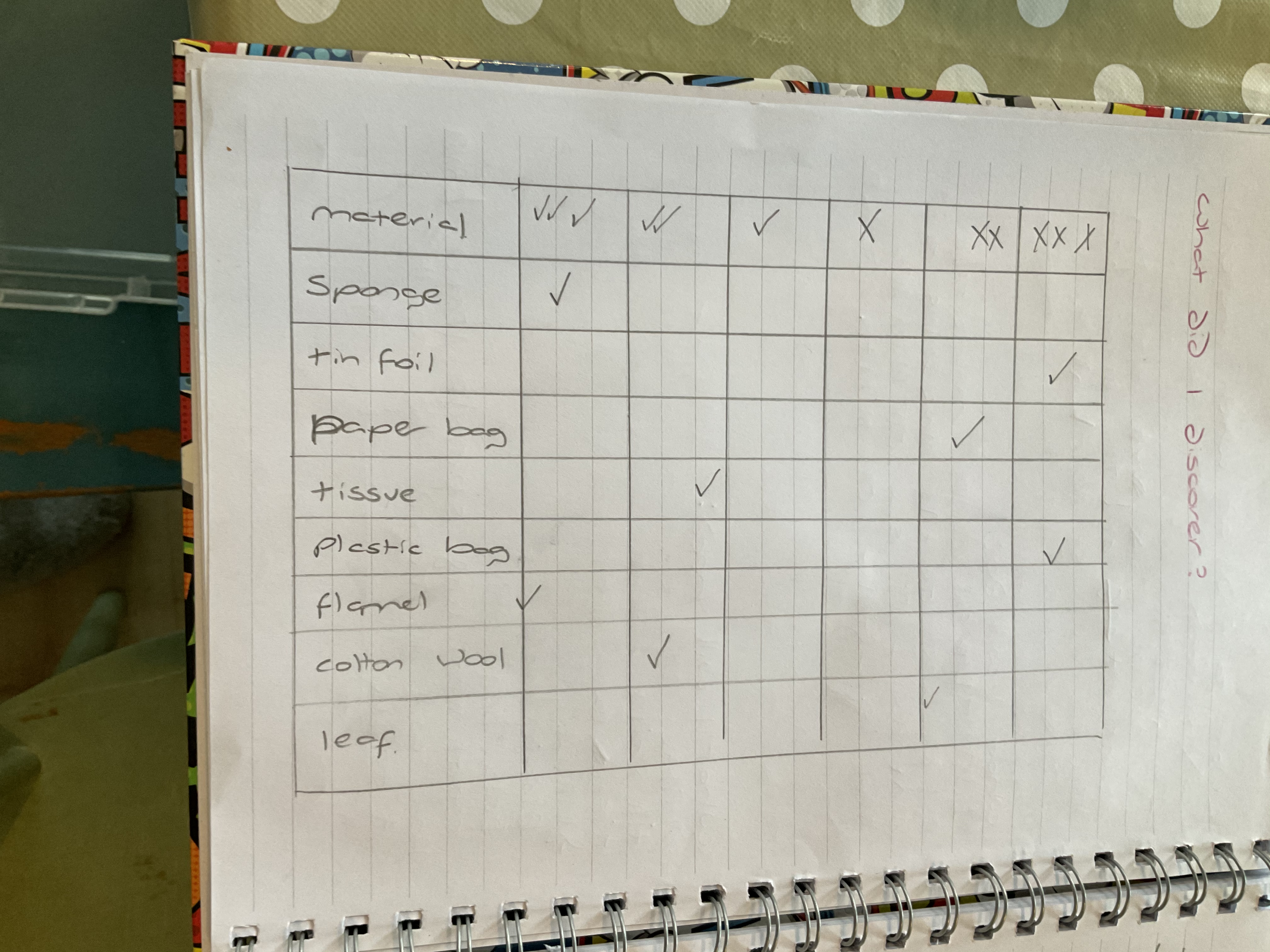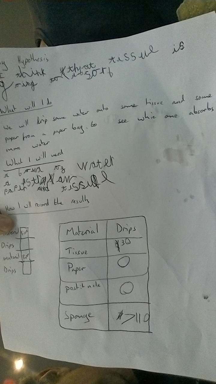 Today we explored absorbency. Children were set the challenge to find a range of absorbent materials across the school and home. Once they had found a range of suitable materials, they had to decide on a method of testing them to find out which was the most absorbent. We discussed a few possible methods, including: