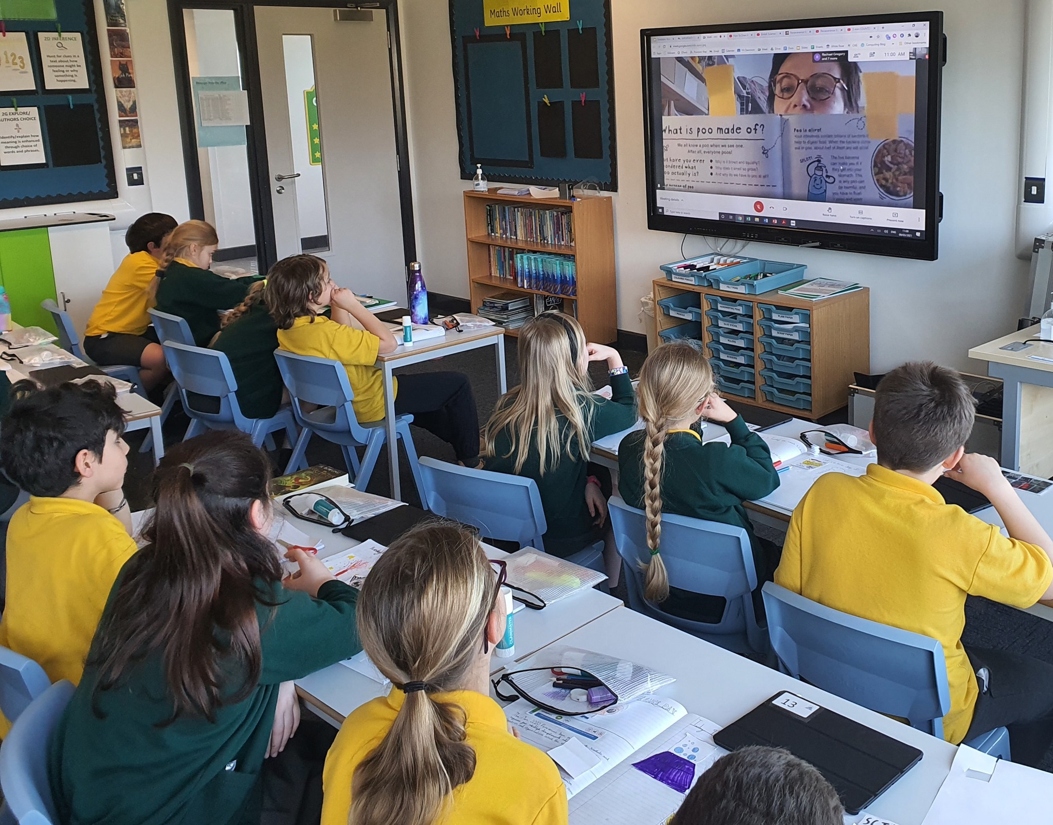 After break, we had a LIVE read along and Q&A session with science author, Anna Claybourne. We already love her ‘Question of Science’ series and regularly use her ‘Science Makers’ books in our lessons. She told us all about writing, and how you don’t have to write stories, but can use writing to communicate all the answers to all the weird questions you have instead! She also told us all about why our eyeballs don’t fall out, and why we poo! We then got to ask her our own questions, which was so much fun!