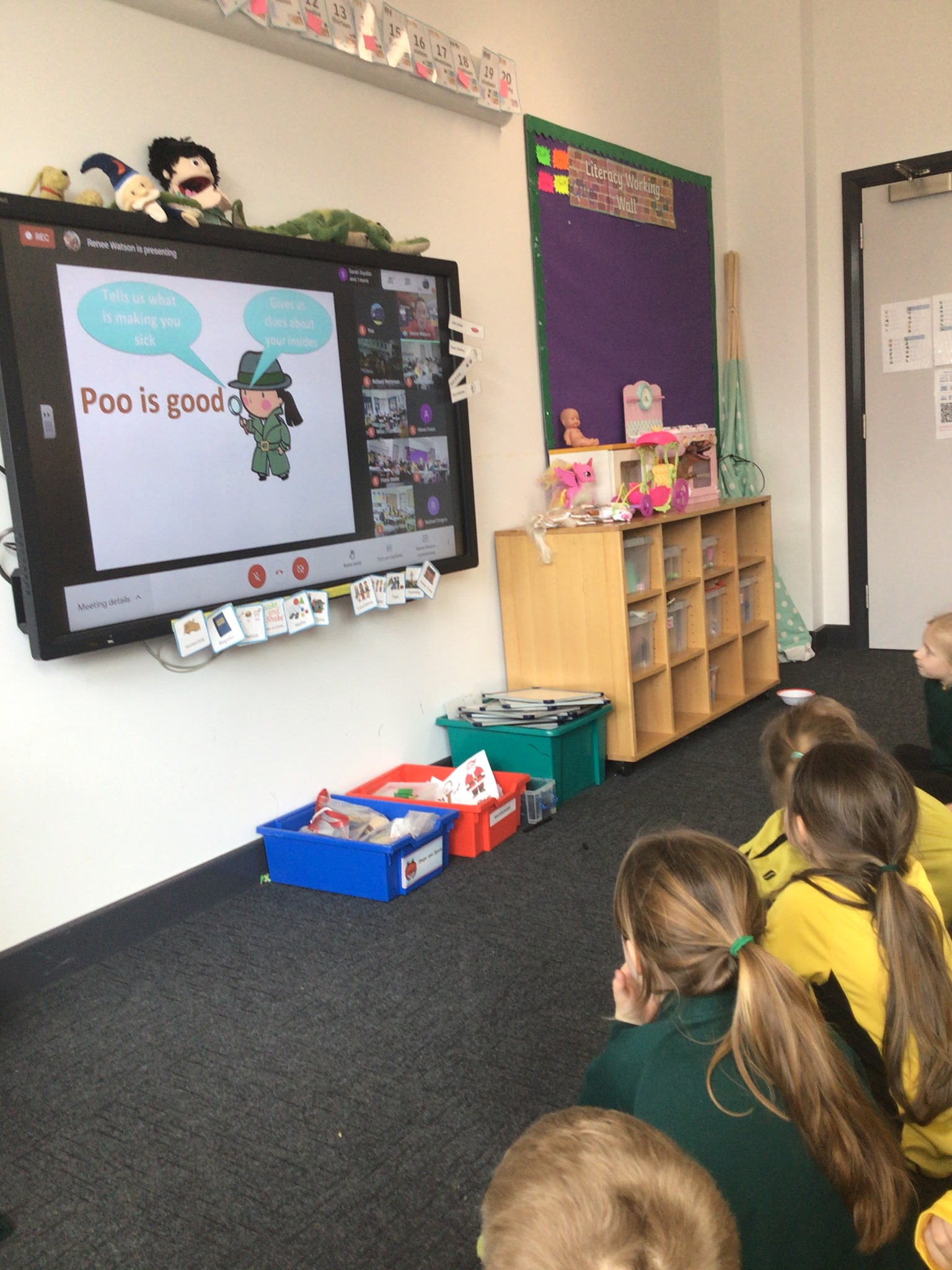 After break, we had a LIVE workshop with Renee Watson, Head of Explosions and Owner of The Curiosity Box, who kindly donated our battery science kits to Y4 before Christmas! She did the workshop ‘Teeth to Toilet!’ and we were all fascinated to learn so much about our bodies – I am sure you all had lots of interesting poo conversations over the dinner table, so my apologies!