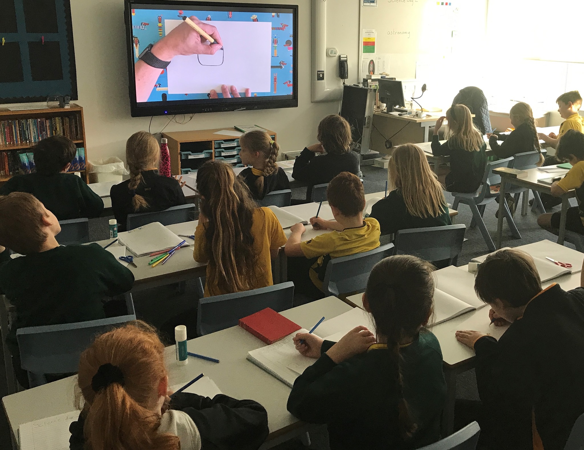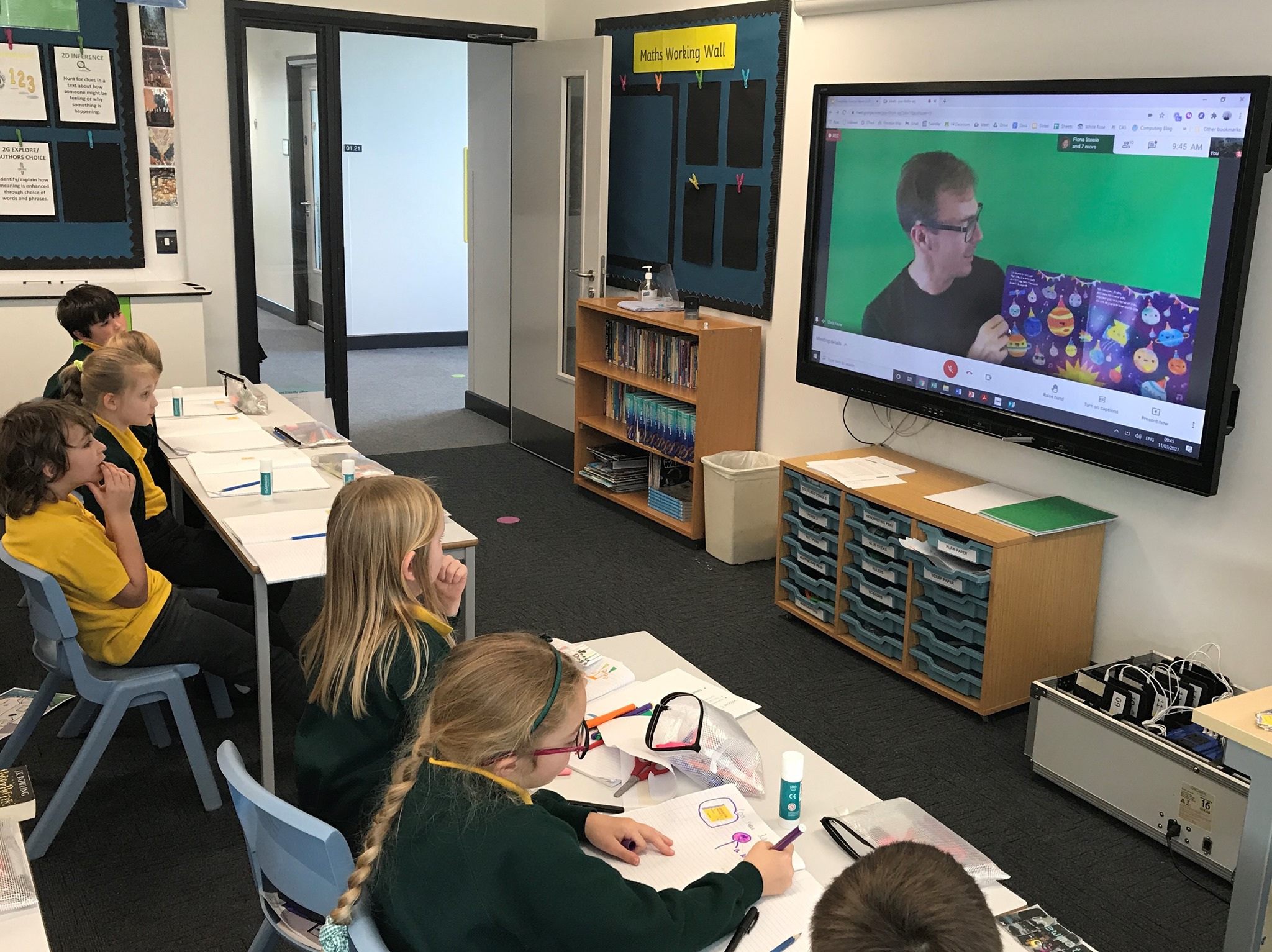 This morning we took a virtual trip all the way to the other side of the world, Australia! At 9.30am, we spoke with Scientist and author, Chris Ferrie, the author of over 100 childrens Science books. He entertained us with his green screen, taking us to lots of funny places! He read us four of his books: