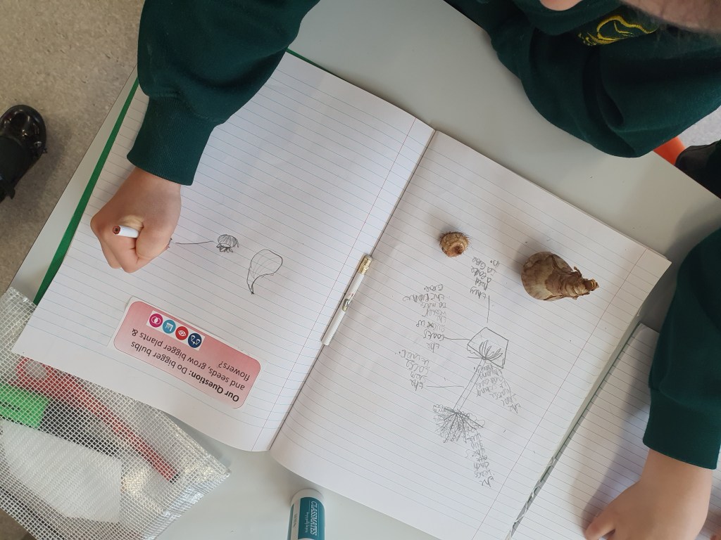 Today we begun our pattern seeking investigation ‘Do bigger seeds & bulbs produce bigger plants?’.