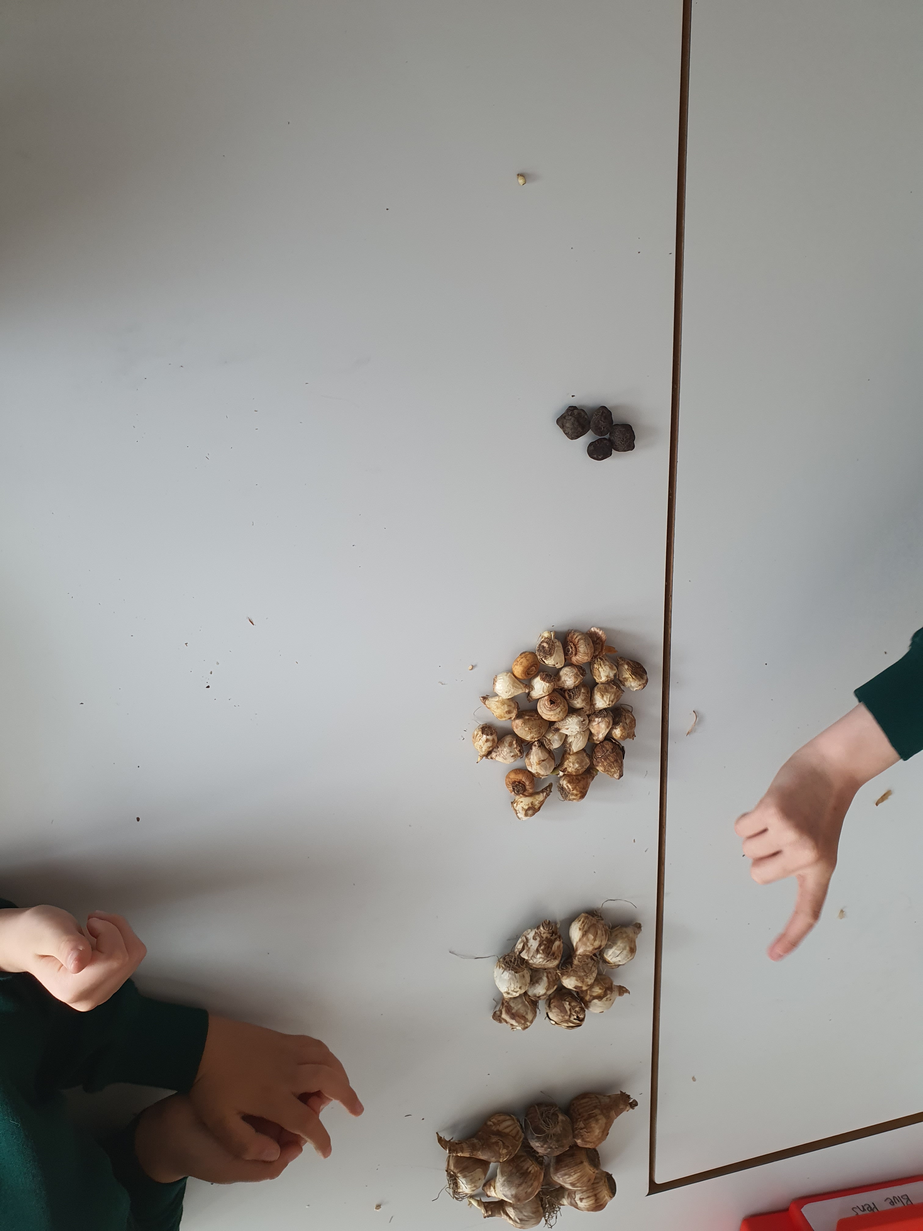 First we discussed the differences we noticed in a range of seeds and bulbs, grouping them into two groups and trying to identify differences. We decided that: