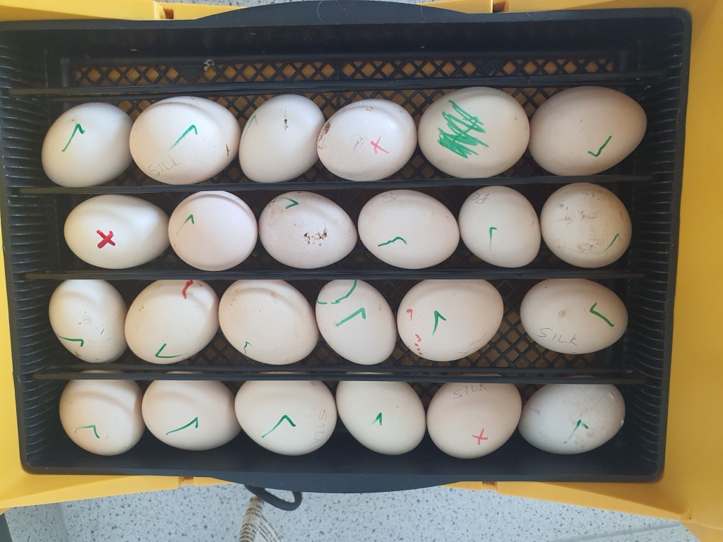 We are looking forward to seeing whether our predictions are correct, we identified 21 fertile eggs, and 3 non fertile, which we have marked so we can keep track.