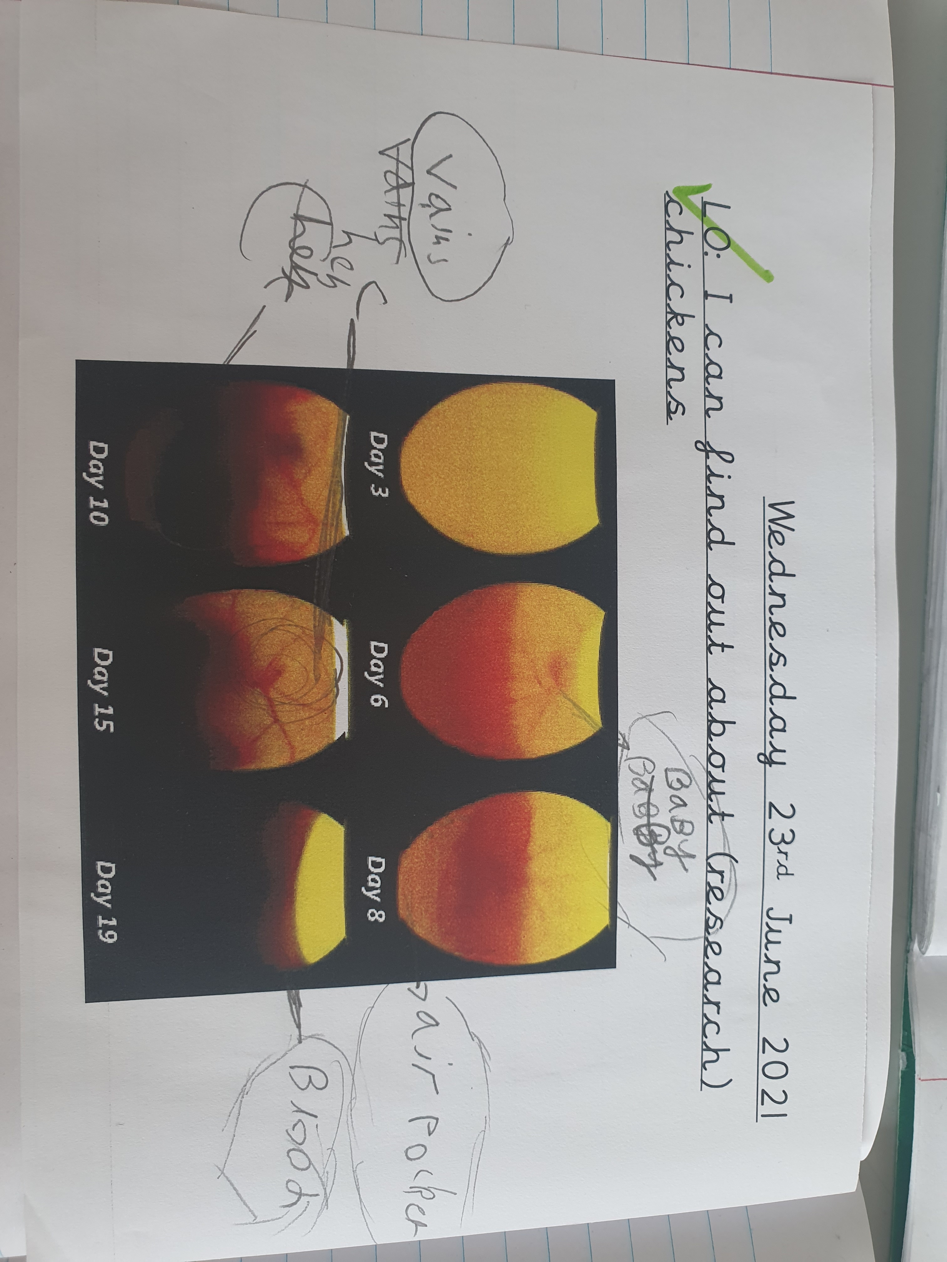 Today we collated our photo diary of our chick embryo development, labelling the eggs with the observable features.
