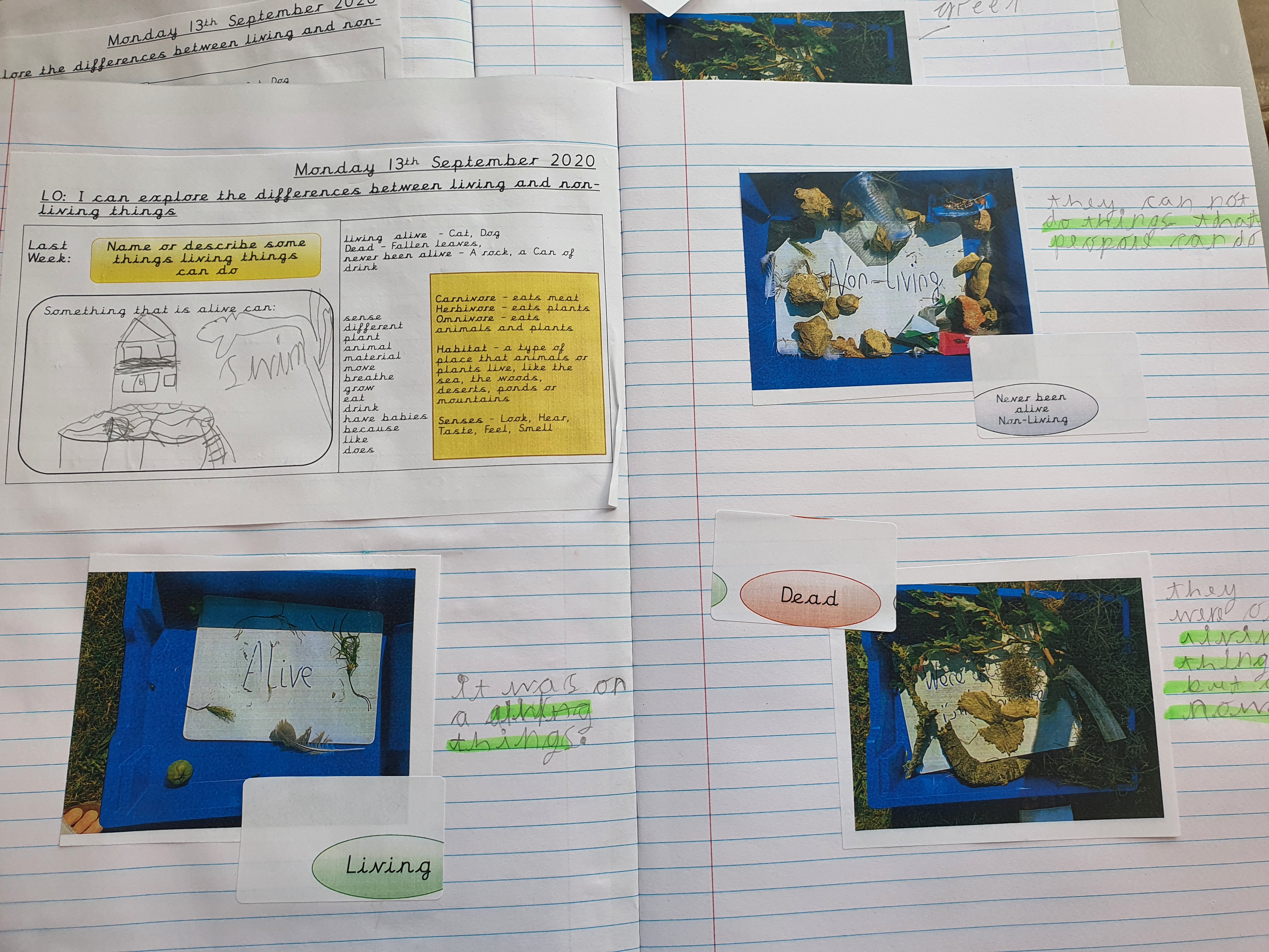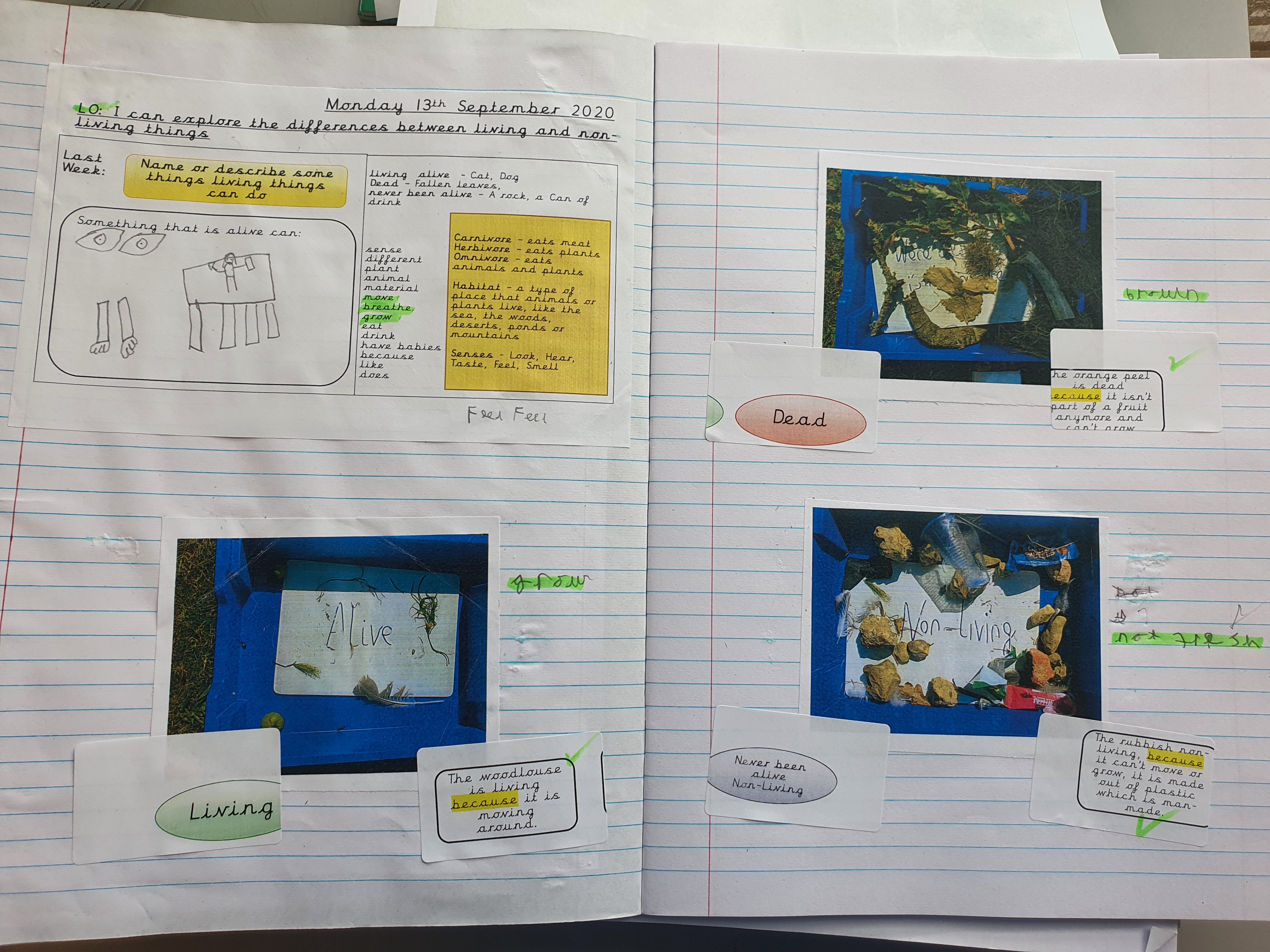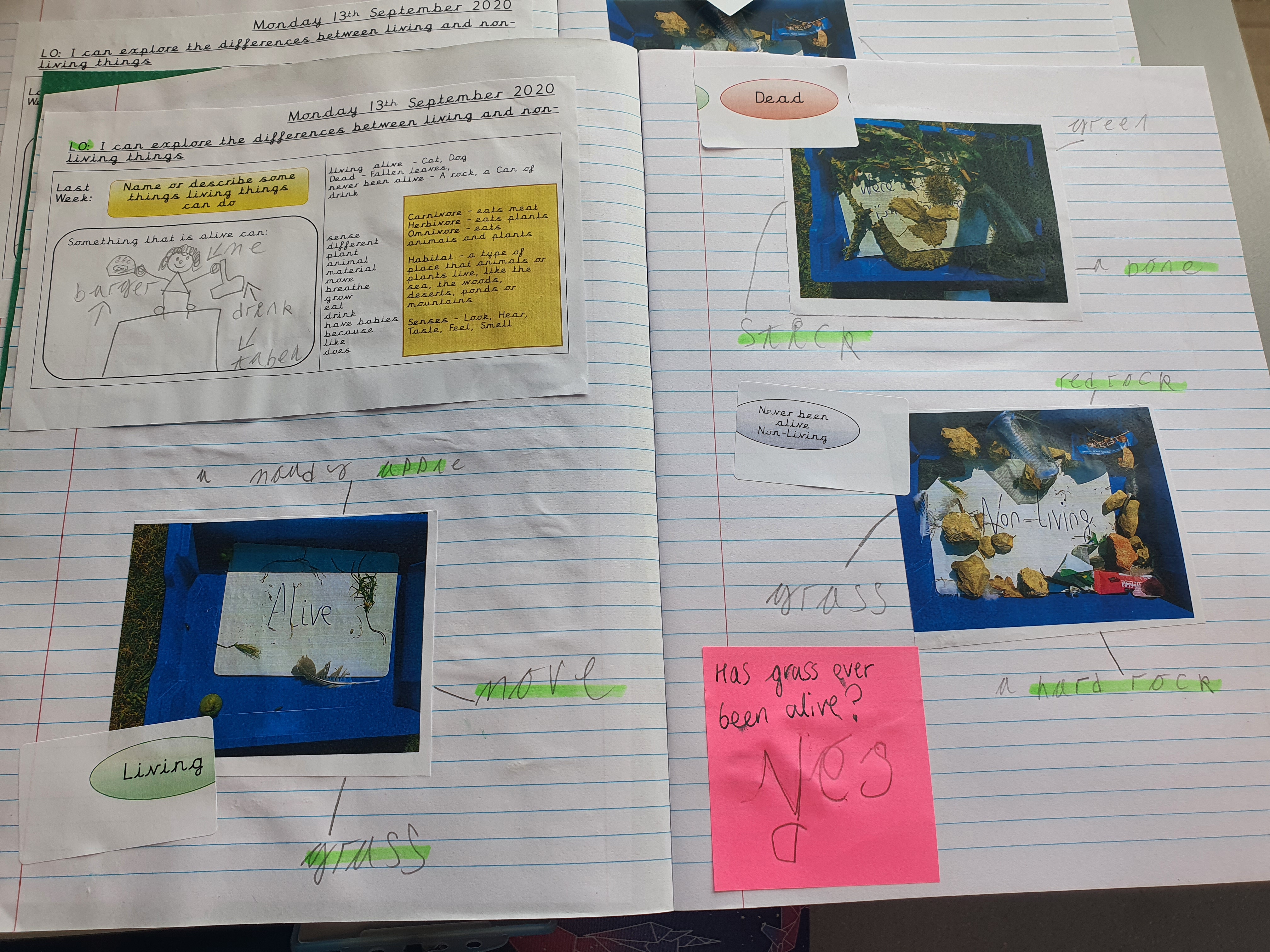 Today we explored our learning from last lesson, building on our understanding of living and non-living things. We built on our scientific vocabulary, and used new words such as: breathe, grow, change, excrete (get rid of waste) to describe living things. We also considered the differences between things that were alive, but are now dead, and those that had never been alive.